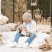 - Lėlytė aprengta žaviais baltais ir smėliniais rūbeliais, šiltu rudu švarkeliu, kojinytėmis ir kepure.