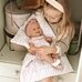 - Lėlytė aprengta rožiniais, gėlėtais rūbeliais, turi galvajuostę, medžiaginius batelius. Rinkinį papildo derantis pledukas.