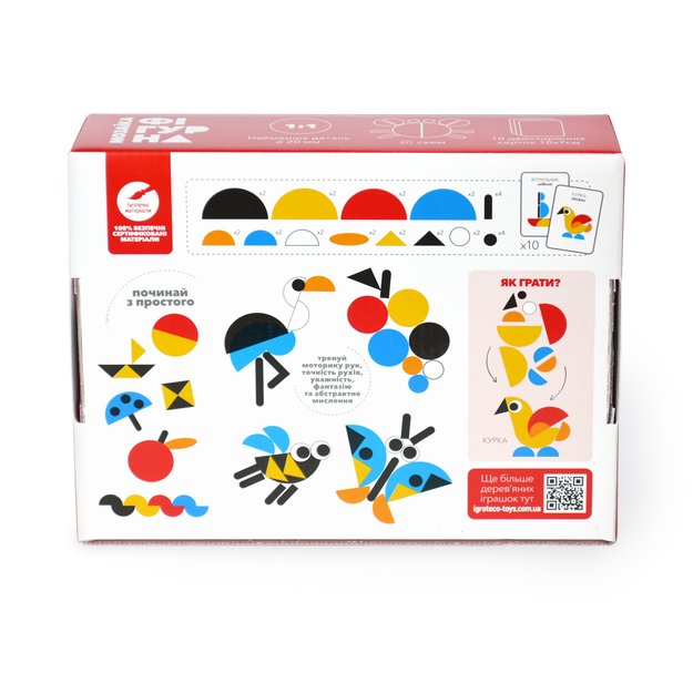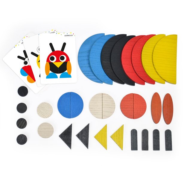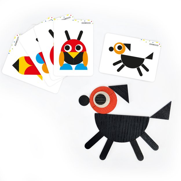 10 dvipusių spalvotų kortelių su įdomiomis mozaikomis ir užduotimis.