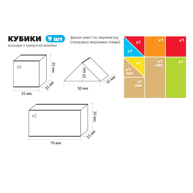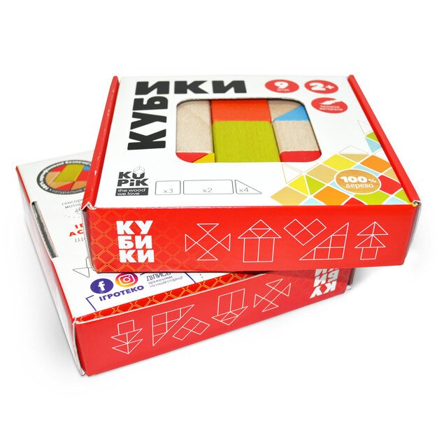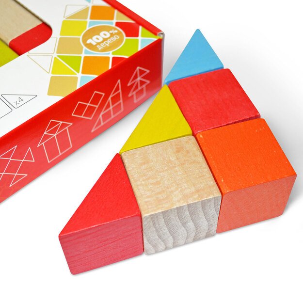 Su šiuo kaladėlių rinkiniu galima sukurti trimates geometrines figūras, mažus bokštelius, raketą, šunį bei atlikti logines užduotis. Mediniai žaislai malonūs liesti, lengvi ir atsparūs mechaniniams pažeidimams, o sutepus – lengvai nuplaunami su muilu. Žaidimas padeda lavinti: