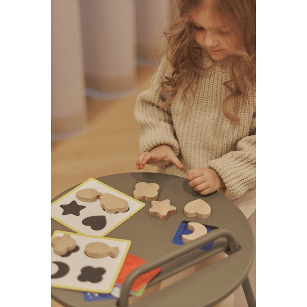 Šis žaidimas yra skirtas sensorinių įgūdžių lavinimui. Liesdamas skirtingas medines figūras, vaikas tobulina lytėjimo jautrumą, smulkiosios motorikos įgūdžius ir lavina kalbos gebėjimus jas įvardindamas ir apibūdindamas.