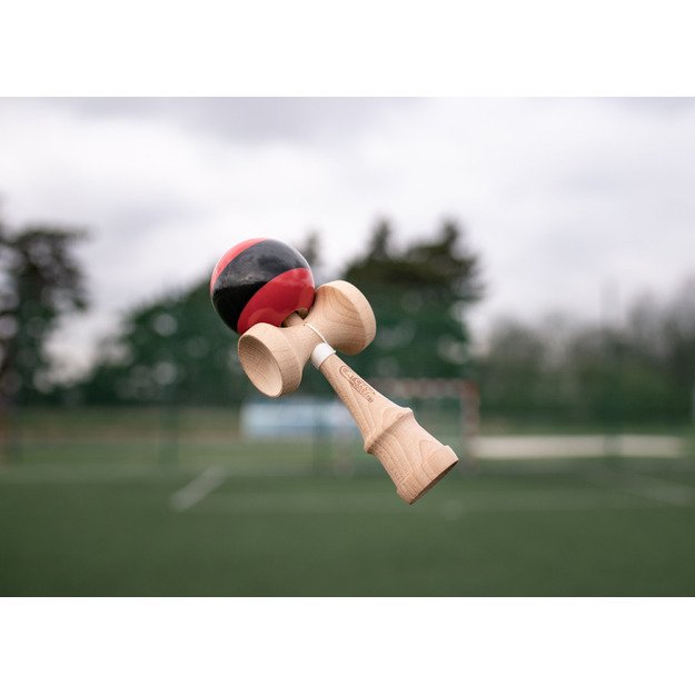 Kendama turi 3 kaušelius ir vieną smaigalį. Kamuoliukas kabo ant virvelės.