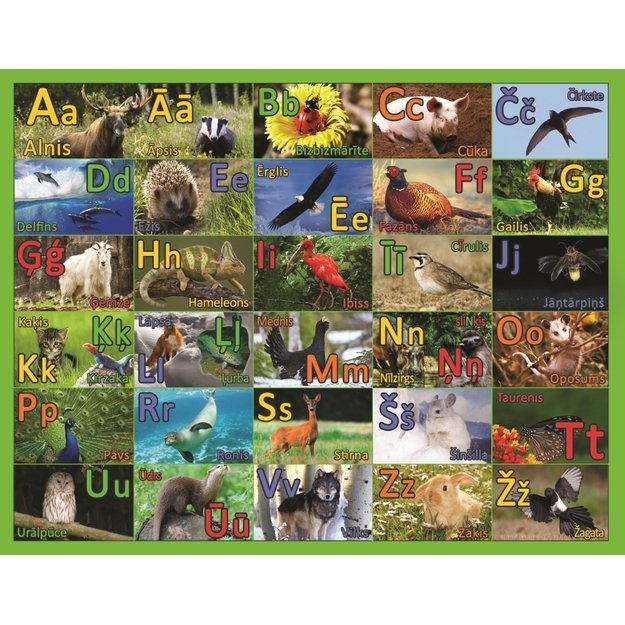 Abėcėlė-dėlionė Gyvūnai - tai puiki priemonė mažyliui lengvai išmokti LATVIŠ;KĄ abėcėlę, bei susipažinti su įvairiais gyvūnais. Paverskite mokymąsi malonumu!