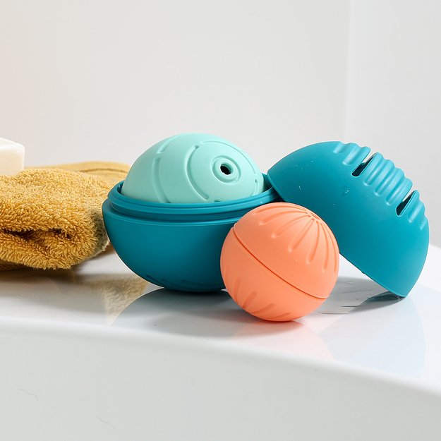 Puiki pramoga mažylių maudynėms - smagu stebėti pro skirtingų dydžių kamuoliukų skylutes tekantį vandenį.