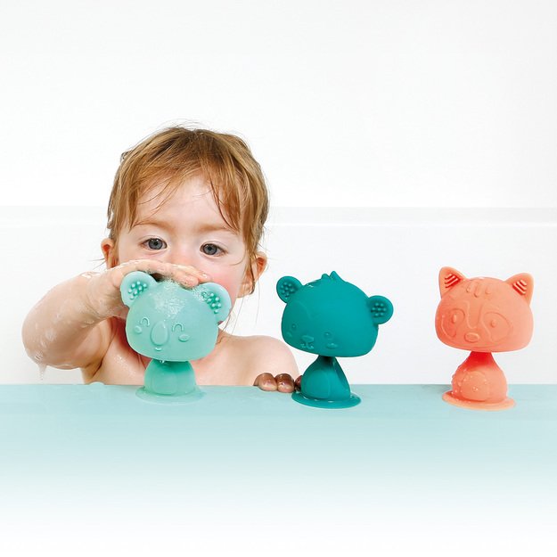 Koala, beždžionėlė ir meškėnas palaikys mayliui kompaniją žaidimų ar valgio metu. Siurbtuko dėka, gyvūnėlius galima pritvirtinti prie bet kokio lygaus paviršiaus: stalo, vaikiškos maitinimo kėdutės, vonios ar net plytelių.