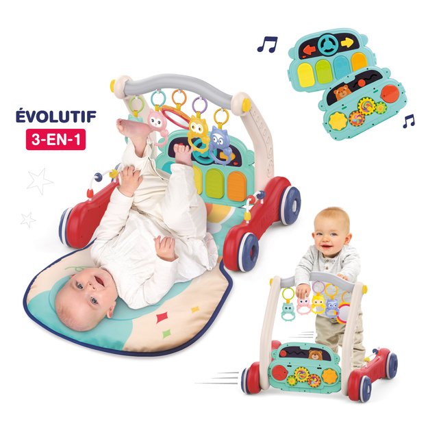 Mažylis gali groti spalvingu mini pianinu arba žaisti su besisukančių krumpliaračių žaidimu ir lavinti savo smulkiąją motoriką. Veiklas galima atskirti nuo bendros žaislo struktūros, kad mažylis galėtų žaisti, kur tik nori.