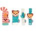 Rinkinyje yra dvi apyrankės ir pora kojinyčių su ryškiais, linksmais dizainais, įvairiomis tekstūromis, kaspinėliais, barškučiais.