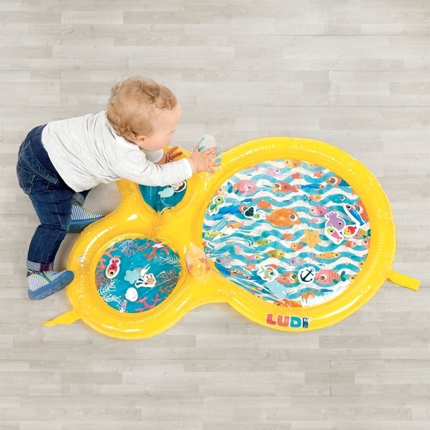 Kai kūdikis atsiremia į kilimėlį, vanduo mažomis srovelėmis juda iš vieno iliuminatoriaus į kitą. Vaikus stebina garsai ir virpesiai, kuriuos skleidžia vanduo tekėdamas iš vienos vietos į kitą. Kiekvieną kartą tai darydami jie sužinos apie priežastį ir pasėkmę, ir norės tai išbandyti vėl ir vėl!