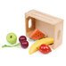 Š;ioje žaislinėje, medinėje dėžutėje rasite bananą, obuolį, porą vyšnių, gabalėlį arbūzo ir braškę.