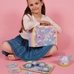 Dėžutė ir indukai apipavidalinti vienaragiais, undinėlėmis, flamingais, debesėliais ir žvaigždutėmis.