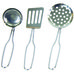 - Rinkinį sudaro: 3 puodai su dangčiais, 1 keptuvė, samtis, kiaurasamtis, mentelė ir padėkliukas. Iš viso 11 dalių.