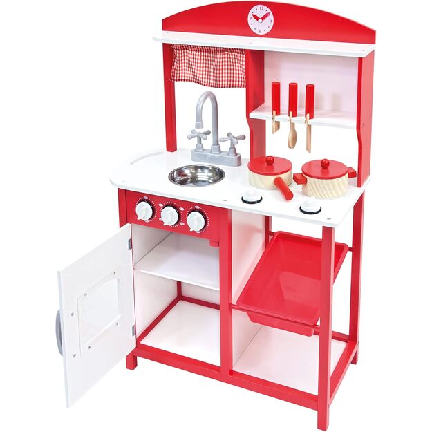 Virtuvėlė sudaro: orkaitė, metalinė kriaukle su kranu, dvi kaitvietės, lentynėlės ir virtuvės reikmenys (puodas ir keptuvė su dangčiu, 3 maisto gaminimo įrankiai)
